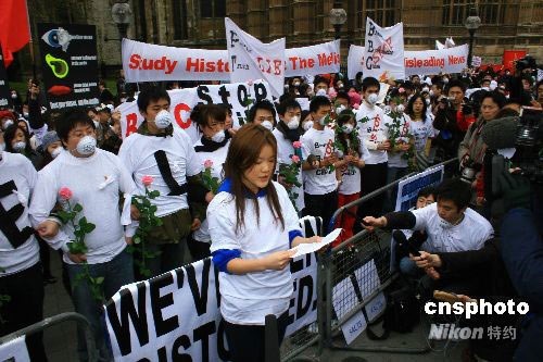 當(dāng)?shù)貢r間19日,在英國學(xué)習(xí)、工作和定居的華人約2000多人在倫敦舉行靜默集會,抗議包括英國廣播公司(BBC)在內(nèi)的西方媒體對中國所做的不公正的、片面的報道。圖為集會組織者秦辰在宣讀抗議聲明。中新社發(fā) 李鵬 攝