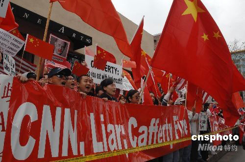 當(dāng)?shù)貢r間4月19日,洛杉磯爆發(fā)十幾年來最大規(guī)模的華人華僑抗議示威活動。數(shù)千名華人華僑和留學(xué)生在CNN洛杉磯分部門前參加和平示威,要求CNN向公開鄭重道歉,并開除卡弗蒂。除了中國大陸籍華人華僑外,很多來自越、柬、寮和印尼等國的旅美華人華僑、香港和臺灣籍僑民和留學(xué)生也加入到抗議隊伍中。中新社發(fā) 張煒 攝