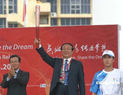 圖為北京奧組委執(zhí)行副主席蔣效愚展示“祥云”火炬。作者: 沈晨