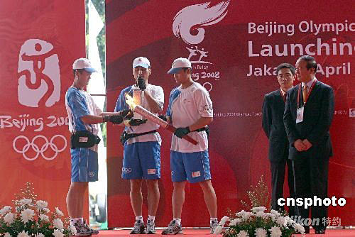 4月22日下午2時(shí)15分,雅加達(dá)特區(qū)省長法烏茲手持“祥云”火炬跑出第一棒,北京奧運(yùn)圣火在雅加達(dá)的傳遞正式啟動(dòng)。北京奧運(yùn)圣火雅加達(dá)站傳遞從蘇加諾體育中心東門開始,八十名火炬手圍繞其中的蘇加諾體育場進(jìn)行七公里左右的傳遞。八十位火炬手中,有印尼現(xiàn)役和退役優(yōu)秀運(yùn)動(dòng)員、贊助商代表、政府官員、社會(huì)活動(dòng)家等。