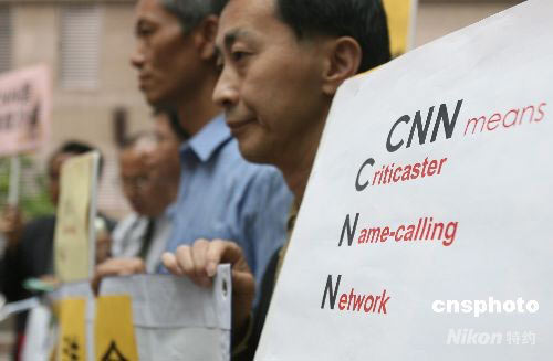 香港教育團(tuán)體集會抗議CNN電視主播辱華言論。中新社發(fā) 武仲林 攝
