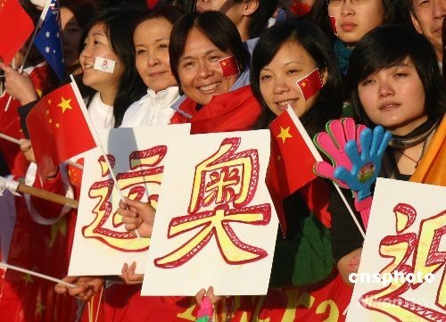 堪培拉華人冒秋寒歡迎北京奧運(yùn)圣火