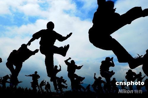 4月下旬,河南登封塔溝武校的練武少年在勤練武功。在聞名海內(nèi)外的河南省登封市少林寺周?chē),每天都有?shù)萬(wàn)人在習(xí)武,練武林中的絕活,他們用精湛武藝展示飛檐走壁、童子功、氣功等。中新社發(fā) 高山岳 攝
