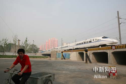 圖:京津城際列車跑出370公里時(shí)速(2)