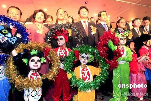 “精彩瞬間,永恒奧運(yùn)-香港·2008奧運(yùn)圖片巡展”四月二十五日在香港中央圖書館開幕,近三百幅奧運(yùn)圖片將在全港進(jìn)行九場展覽,歷時(shí)三個(gè)月。北京奧組委新聞宣傳部部長王惠、香港民政事務(wù)局局長曾德成、中央駐港聯(lián)絡(luò)辦公室副主任李剛、外交部駐港公署副特派員楊子剛、香港奧林匹克委員會(huì)會(huì)長霍震霆等眾多嘉賓出席﹐與打扮成福娃的兒童合影留念。 中新社發(fā) 王麗南 攝