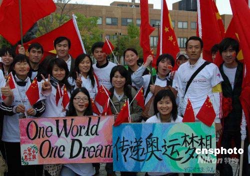 4月26日清晨6點(diǎn),作為北京奧運(yùn)會(huì)火炬?zhèn)鬟f長野段終點(diǎn)的若里公園聚集了大批從日本各地連夜趕來的中國留學(xué)生。中新社發(fā) 關(guān)妍 攝