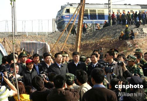圖:張德江感謝參加膠濟鐵路事故搶險的人員