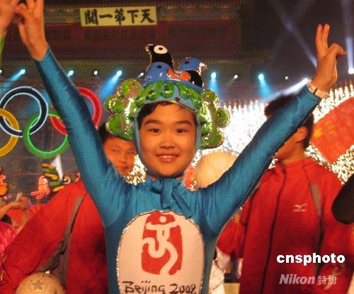 4月29日晚,北京奧運(yùn)會(huì)協(xié)辦城市秦皇島迎奧運(yùn)倒計(jì)時(shí)一百天大型慶;顒(dòng),在“天下第一關(guān)”山海關(guān)廣場舉行。中新社發(fā) 潘海濤 攝