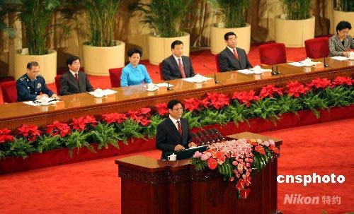 北京奧組委主席在奧運會倒計時100天誓師大會上致辭。中新社發(fā) 任海霞 攝