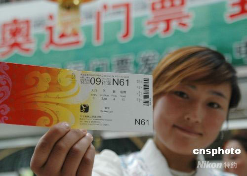 圖為大學(xué)生拉姆在展示自己剛買到的奧運門票。 中新社發(fā) 周波 攝