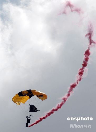 圖為美軍“金騎士”跳傘隊(duì)表演“云中漫步”。中新社發(fā) 張煒 攝