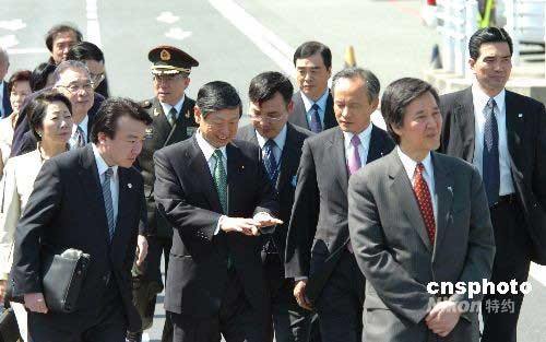 當(dāng)?shù)貢r(shí)間5月6日下午1點(diǎn)45分左右,中國(guó)國(guó)家主席胡錦濤乘專(zhuān)機(jī)抵達(dá)日本羽田機(jī)場(chǎng),開(kāi)始對(duì)其為期5天的國(guó)事訪(fǎng)問(wèn)。圖為日本外相高村正彥、中國(guó)駐日大使崔天凱等到機(jī)場(chǎng)迎接胡錦濤主席。中新社發(fā) 朱沿華 攝