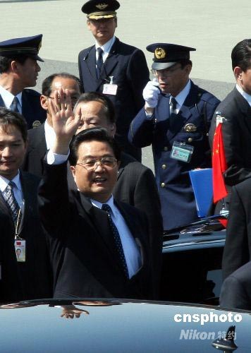 當(dāng)?shù)貢r間5月6日下午,中國國家主席胡錦濤乘專機抵達日本羽田機場,開始對日進行為期5天的國事訪問。圖為胡錦濤在機場向歡迎人群揮手致意。中新社發(fā) 齊彬 攝