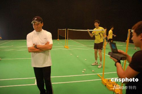 5月6日下午,中國羽毛球隊(duì)總教練李永波與羽球國手鮑春來,一同出現(xiàn)在北京奧運(yùn)環(huán)保公益廣告片的拍攝現(xiàn)場(chǎng)。由“中國環(huán)境意識(shí)項(xiàng)目”主辦、北京華映人國際影業(yè)投資有限公司拍攝的北京奧運(yùn)環(huán)保公益廣告系列片。此次李永波出演的《節(jié)約能源篇》是該系列片的最后一部。據(jù)悉,該片是“中國環(huán)境意識(shí)項(xiàng)目”的子項(xiàng)目,也是聯(lián)合國開發(fā)計(jì)劃署、北京奧組委和環(huán)境保護(hù)部的合作項(xiàng)目,目前已開始陸續(xù)在奧組委大型活動(dòng)、中央電視臺(tái)及奧運(yùn)賽場(chǎng)上循環(huán)播放。中新社發(fā) 潘旭臨 攝