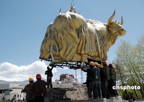 圖:拉薩市標(biāo)銅雕“牦!卑峒(2)