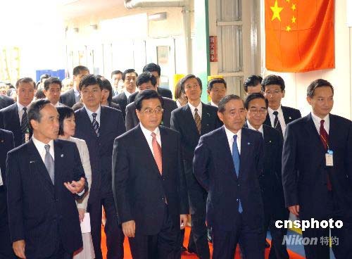 圖:胡錦濤參觀日本川崎環(huán)保新城(2)