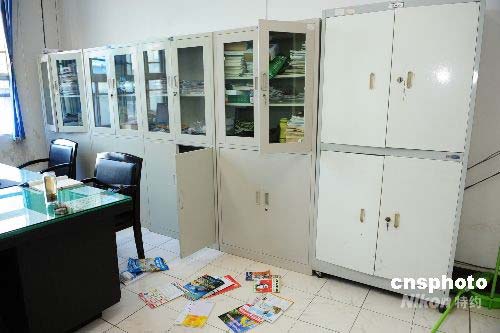 西安某單位辦公室被震開(kāi)的文件柜。中新社發(fā) 唐振江 攝