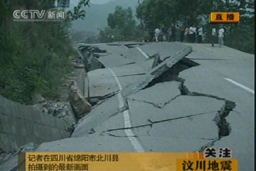 圖:綿陽市北川縣災(zāi)情嚴(yán)重 公路擰成“麻花”