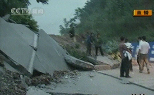 圖:綿陽市北川縣災(zāi)情嚴(yán)重 公路擰成“麻花”(2)