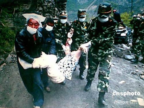 5月12日四川汶川發(fā)生7.8級(jí)地震后,武警重慶總隊(duì)黨委積極組織官兵投入抗震救災(zāi)工作當(dāng)中,在四川、重慶兩地展開救援保障工作。5月13日7時(shí)45分,趕赴汶川地震核心區(qū)域的該總隊(duì)500名官兵,途徑茂縣沙塆村疊海風(fēng)景區(qū)時(shí)看到,因地震和大雨造成山石松動(dòng),山上滾下來的石塊將一輛小轎車和一輛從成都到九寨溝的大客車砸中并掩埋,總隊(duì)官兵當(dāng)即就地展開救援工作。中新社發(fā) 周中余 攝