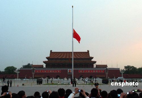 天安門廣場下半旗沉痛哀悼地震遇難者