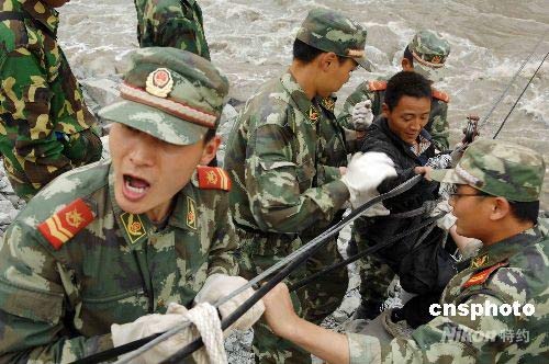 武警官兵在汶川岷江營救轉(zhuǎn)移地震災(zāi)民(2)