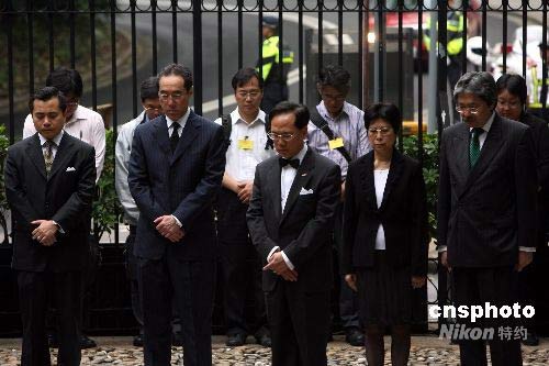 五月十九日下午,香港特別行政區(qū)行政長官曾蔭權、政務司司長唐英年、財政司司長曾俊華及其他政府主要官員,在特區(qū)政府總部默哀三分鐘,對四川大地震遇難者表示深切哀悼。中新社發(fā) 武仲林 攝