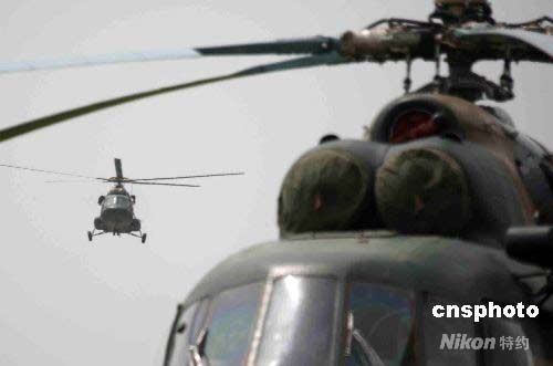 抗震救災(zāi)開始以來,中國軍方直升機連續(xù)向災(zāi)區(qū)輸送救災(zāi)物資。中新社發(fā) 曾憲平 攝