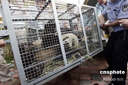 八只來自四川災(zāi)區(qū)的奧運大熊貓平安抵京