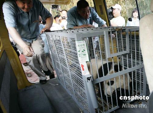 5月24日下午,八只來自四川臥龍的奧運大熊貓平安抵達(dá)北京動物園。中新社發(fā) 杜洋 攝