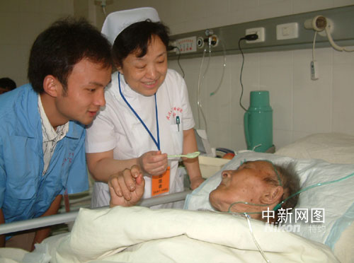 24日晚18點,長途轉(zhuǎn)運到武漢大學中南醫(yī)院的90歲的老人,多發(fā)肋骨骨折,沒有家屬陪伴,醫(yī)院的老護士和志愿者一口一口地喂他吃著醫(yī)院免費提供的晚餐。據(jù)了解,該院為全部轉(zhuǎn)運到該遠的38位四川災區(qū)病人免費提供了衣、食、住,讓他們能享受到最好的醫(yī)療服務。