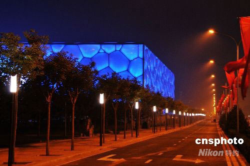 組圖:“水立方”調試外景燈(2)