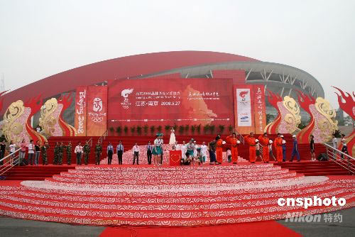 圖:圣火南京傳遞 藝術(shù)團(tuán)為抗震救災(zāi)表演