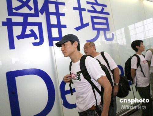 五月二十八日,出發(fā)去四川地震災區(qū)探訪的香港演藝界“5·12關愛行動”首批藝人在香港國際機場接受媒體采訪。劉德華、鄭秀文、容祖兒等十多位藝人將在四川地震災區(qū)慰問四天,將服從當地安排去探望災區(qū)孤兒并參加三十日四川的賑災演出等工作。中新社發(fā) 王麗南 攝
