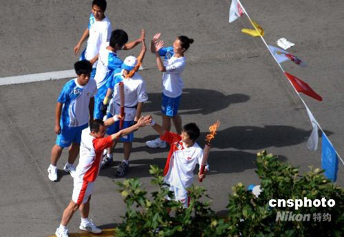 圖:火炬手擊掌示意