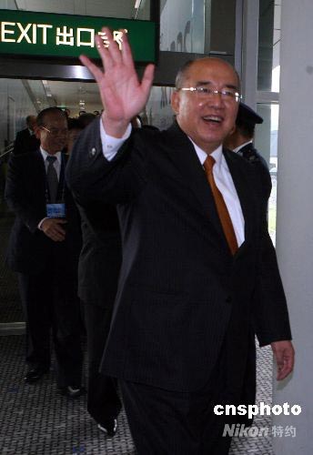 吳伯雄一行抵達(dá)香港國(guó)際機(jī)場(chǎng)。中新社發(fā) 武仲林 攝