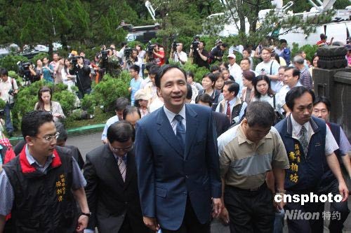 圖為桃園縣長(zhǎng)朱立倫(右三)率眾進(jìn)入慈湖陵寢。中新社發(fā) 耿軍 攝