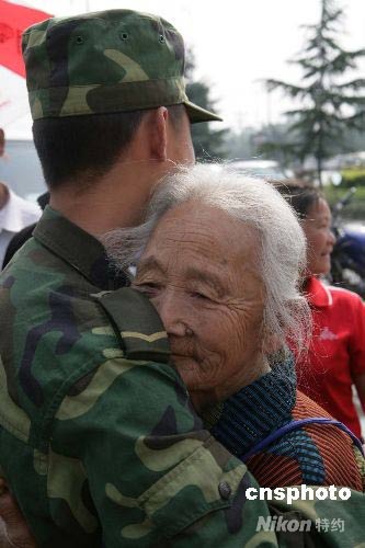 四川震區(qū)見(jiàn)聞:解放軍救災(zāi)間隙的親情團(tuán)聚