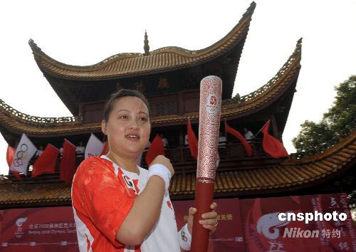 圖:奧運(yùn)冠軍龔智超岳陽樓前傳遞奧運(yùn)圣火