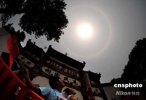 圖:奧運(yùn)圣火在韶山傳遞時(shí)出現(xiàn)日暈奇觀