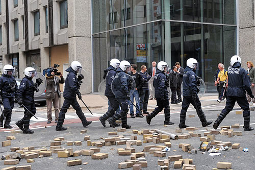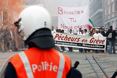 示威漁民稱,除非歐盟提供更多的幫助,否則他們的生計(jì)將受到威脅。漁民們封鎖了歐盟委員會(huì)外的主要街道,抗議轉(zhuǎn)變?yōu)楸┝,?shù)百名的防暴警察手持警棍和盾牌,動(dòng)用水龍驅(qū)散抗議人群。憤怒的漁民們?cè)宜榱瞬AА⑼品,并縱火焚燒歐盟的旗幟。(關(guān)新)