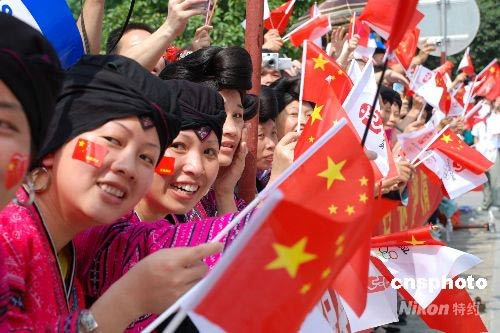 圖:廣西桂林少數(shù)民族群眾喜迎奧運(yùn)圣火