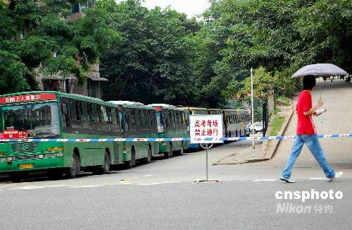 重慶市北碚區(qū)西師附屬中學(xué)外拉起了“禁止車輛通行”的警戒線,全力保證高考期間考場(chǎng)周圍的安靜狀態(tài),讓考生考出最佳成績(jī)。中新社發(fā) 許康平 攝