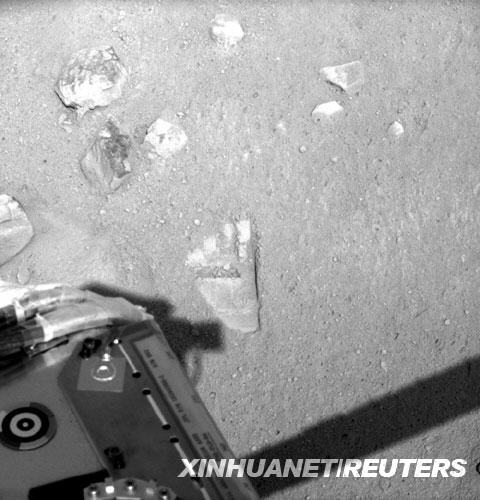這張圖片顯示的是“鳳凰”號火星著陸探測器的機(jī)械臂在火星上留下的“第一痕”。