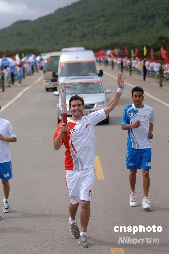 6月10日,奧運圣火在云南麗江傳遞,圖為168號火炬手法國人尼爾·格雷高(音譯)正在傳遞火炬。中新社發(fā) 廖攀 攝