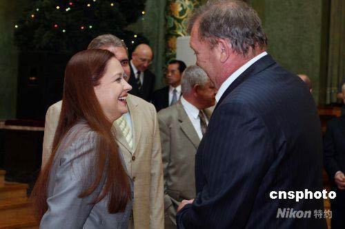 6月10日,中國駐俄大使劉古昌在使館為俄方赴華抗震救災(zāi)醫(yī)療隊舉行答謝招待會。圖為俄緊急救災(zāi)部部長紹伊古的女兒尤利婭和同事在活動現(xiàn)場。尤利婭是俄緊急情況部緊急心理救助中心主任、心理學(xué)副博士,四川發(fā)生大地震后,她被父親親自派往地震災(zāi)區(qū)進(jìn)行救援。中新社發(fā) 田冰 攝