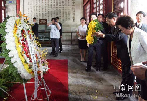 6月12日上午,海峽交流基金會董事長江丙坤來到北京香山碧云寺,拜謁孫中山先生衣冠冢,并參觀孫中山紀念堂。中新社記者 張宇 攝