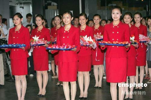 圖:15位準(zhǔn)空姐北京演練奧運(yùn)頒獎(jiǎng)儀式 (4)