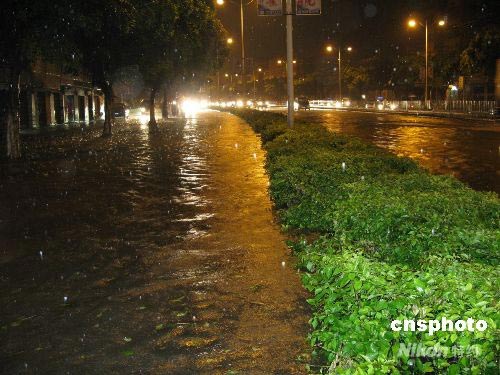 圖為高一米的街道綠化帶幾乎被水淹沒。中新社發(fā) 蒙鳴明 攝