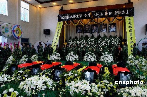 6月13日,四川大地震救援中失事直升機(jī)遇難機(jī)組人員遺體告別儀式在成都市殯儀館舉行,來(lái)自軍方及社會(huì)各界的人士紛紛前來(lái)送別英雄。中新社發(fā) 劉新 攝